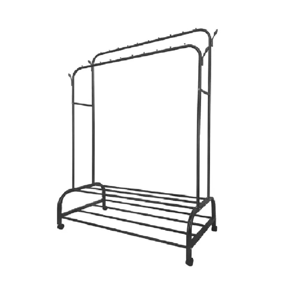 • 1 Perchero de ropa doble poste con zapatero integrado.